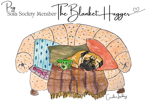 Pug Signed Print ‘The Blanket Hugger’ Sofa Society Member